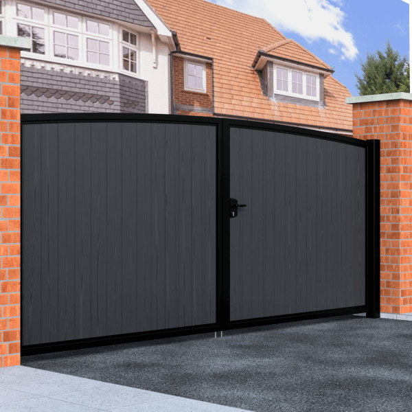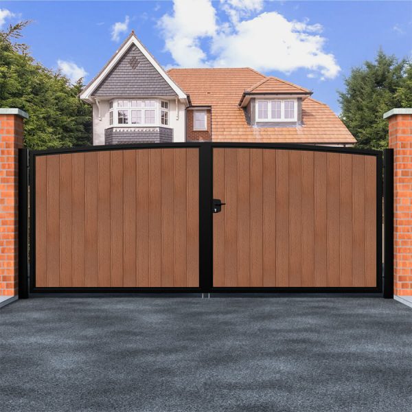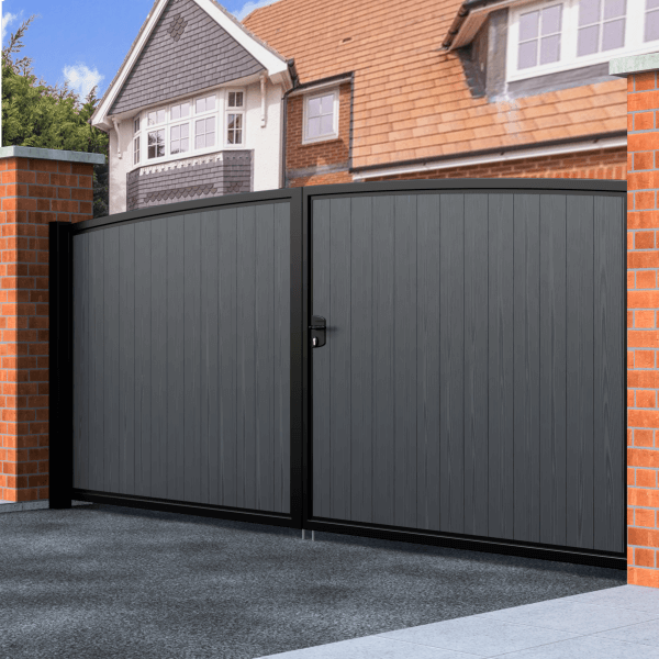 The Oslo Swing Composite Gate combines sleek design with sustainability. Featuring a stylish arch top design, this gate is handcrafted by our skilled team using eco-friendly composite materials, offering durability and a refined look that complements any property. Perfect for those looking for a functional yet environmentally conscious choice.